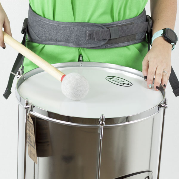 Correas de nylon acolchadas batucada. Con cierre de seguridad y cierre velcro. Dos mosquetónes metálicos y correderas. Largo cintura: mínimo 103cm-máximo 120cm. Para timbas, surdos, repeniques, tambores, etc