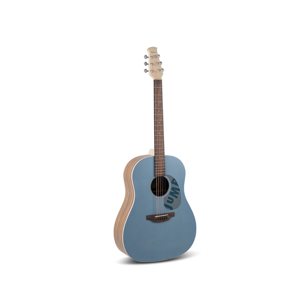 Guitarra acústica con cuerpo tipo nex, tapa maciza de cedro y aros y fondo de caoba. Color: Natural satinado.