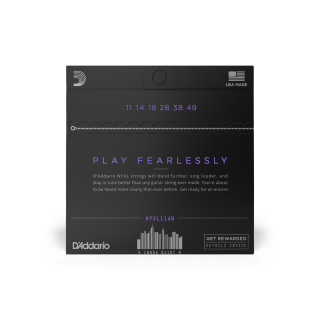 Las cuerdas para guitarra D’Addario NYXL se estirarán más, tendrán más volumen y mantendrán la afinación mejor que cualquier otra cuerda que usted haya tocado antes. Ideado, perfeccionado y fabricado por D’Addario en Nueva York, este núcleo de acero al carbono y aleación de acero liso de nuevo desarrollo y resistente a las roturas ofrecen todo un nuevo nivel de libertad, confianza y potencia. Las NYXL ofrecen más resistencia y hasta un 131 % más de estabilidad de afinación al utilizar un proceso de estirado de cable totalmente reinventado combinado con un revolucionario proceso de «torsión de fusión» para las cuerdas de acero liso. Los enrollados de cuerda chapada en níquel reformulados tienen mayores propiedades magnéticas que les confieren una mayor potencia de salida y mejor respuesta a las frecuencias medias para mayor presencia y ataque.