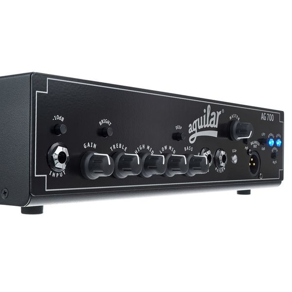 • Reguladores para Gain, Treble (+/- 14 dB @ 4 kHz), high Mid (+/- 14dB @ 800 Hz), low Mid (+/- 15 dB @ 300 Hz), Bass (+/- 17 dB @ 40 Hz)