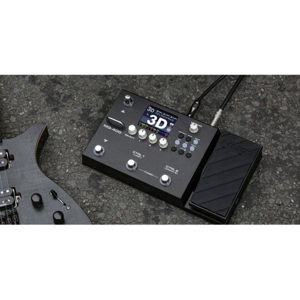 Pedal multiefectos para guitarra eléctrica Nux MG-400 Modeling Guitar Processor - 2 chips DSP para modelado de amplificador con tecnología NUX TSAC-HD que replica la jugabilidad que la mayoría de los guitarristas prefieren en un amplificador de válvulas real. Post FX de alta calidad con Core Image Technology. Modelos de amplificadores de guitarra eléctrica, modelos de amplificadores de bajo e IR de simulación acústica con modelos de amplificadores acústicos relacionados. Cargador IR + IR de terceros que puede editar. 10 bloques flexibles independientes (NG, CMP, EFX, AMP, IR, EQ, MOD, DLY, RVB, P.L). LCD color de 2,8": deshazte de los manuales, puedes aprender directamente aquí. Pedal de expresión integrado (volumen/efectos). Interfaz de audio USB: conéctelo a través de USB a su PC y podrá grabar pistas, reamplificar y hacer transmisiones en vivo. Drum y looper incorporados. Software de edición de tonos rápidos para ajustes profundos y gestión de ajustes preestablecido