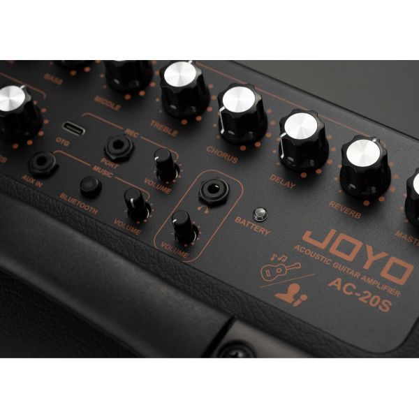 • Reguladores: Volume, Bass, Middle, Treble, Chorus, Delay, Reverb, Master, Mic Channel (Volume, Reverb), Rec Volume, Music Volume, Headphones Volume